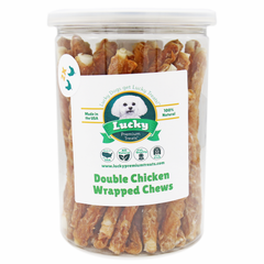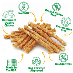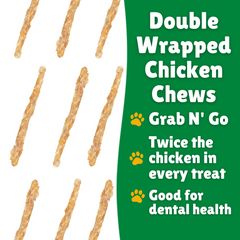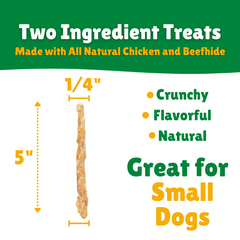 We’ve taken our customer favorite – our hand wrapped chicken wrapped chew – and doubled the amount of chicken! Your dog will love the extra chicken, protein, nutrients and chewing time. These delicious regular size treats are the perfect size for small / regular sized dogs like Terriers, Beagles, French Bulldogs, Dachshunds, and other dogs under 25 lbs.