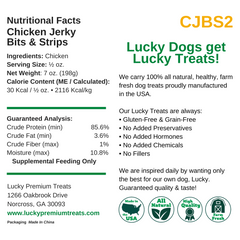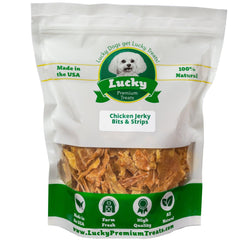 Our all natural chicken jerky is just one ingredient, sliced fresh and dehydrated to perfectly keep its savory flavor. We use human-grade, lean chicken breast to make a special treat for your dogs. Bits & Strips are smaller strips and chunks of our Chicken Jerky Fillets. Your furry friend is sure to love these treats made right here in the USA!
